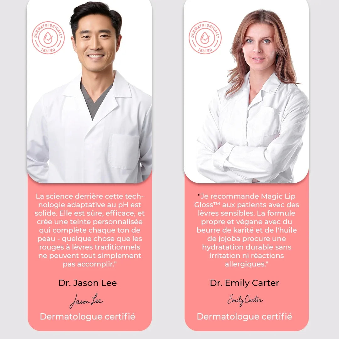 Contrairement aux rouges à lèvres génériques qui ne changent qu'en rose basique, Magic Lip Gloss™ crée des teintes uniques personnalisées. Notre formule nutritive hydrate tandis que les autres produits concurrents dessèchent. De plus, notre durée de plus de 8 heures surpasse largement les produits similaires.